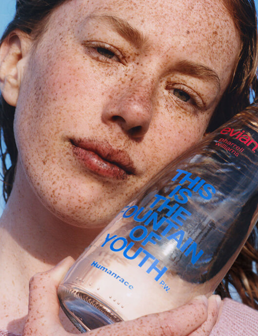 Pharrell reinventează ideea străveche a Fântânii Tinereții pentru evian prin prisma Humanrace, aducându-o la viață într-un mod posibil doar datorită acestei sinergii speciale în trei. Această colaborare unică transformă un obiect cotidian într-un simbol al sărbătorii și vitalității.